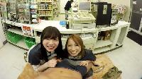 北川エリカ 斎藤みゆ お客さんに隠れてこっそりフェラチオ!!コンビニレジ下VR